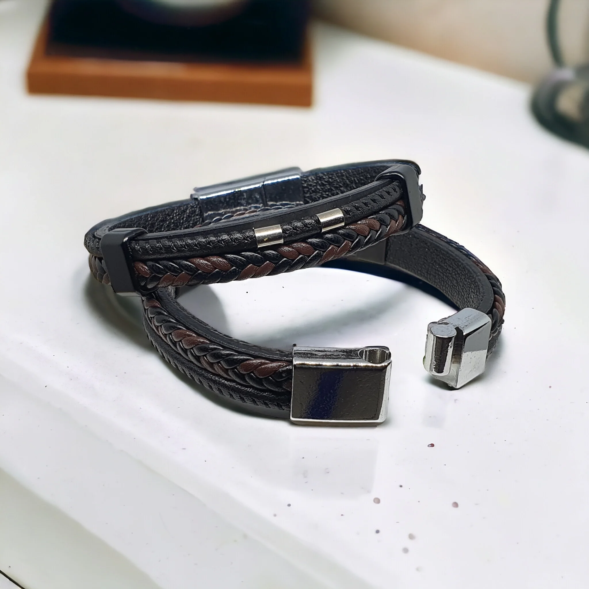 • Deri Erkek Bilekliği - Manyetik Mıknatıs Klipsli